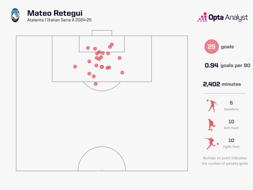 Голмайсторът на Серия А и носител на награта „Паоло Роси“, Матео Ретеги изигра зашеметяващ сезон с екипа на Аталанта. Италианският таран отбеляза 25 гола в 36 мача – най-доброто постижение за играч на Аталанта в един сезон в елита. Той бе и лидер по брой мачове с реализиран повече от един гол: три пъти вкара по два, веднъж хеттрик и един път дори наниза четири гола във вратата на Верона.