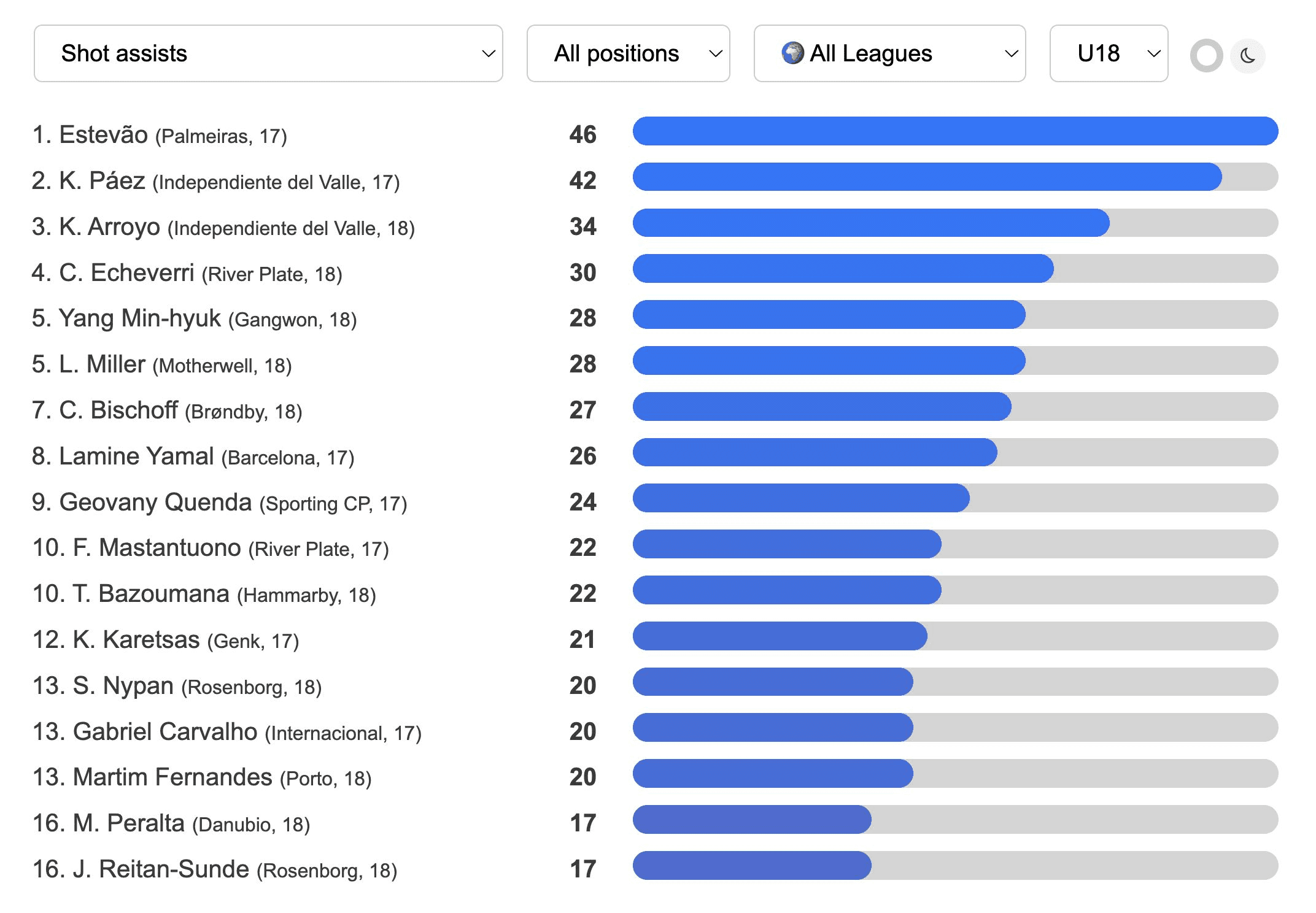 С топка в крака обаче е специален играч. През миналия сезон е сред топ 5 на футболистите под 18 години с най-много ключови подавания.